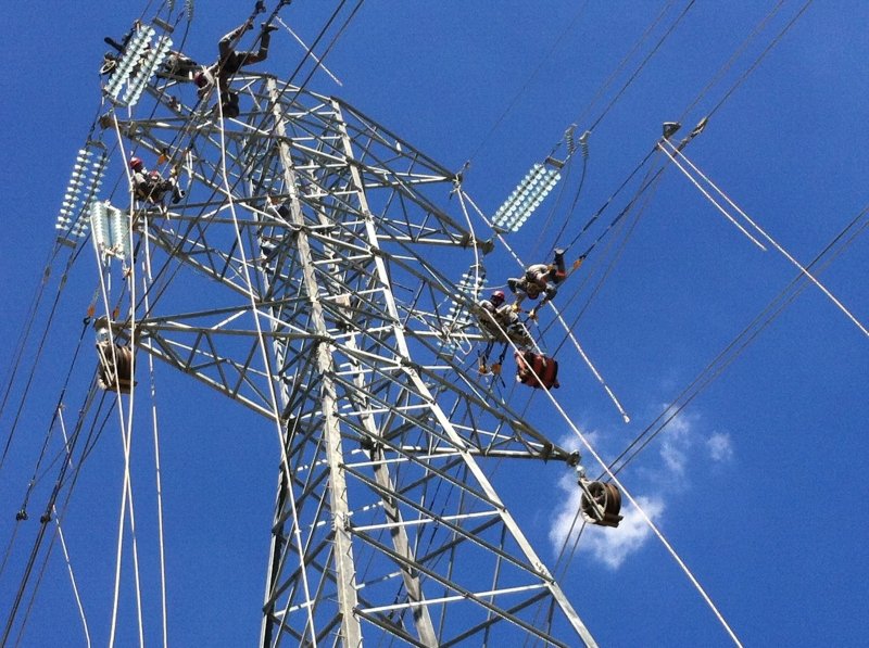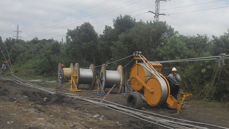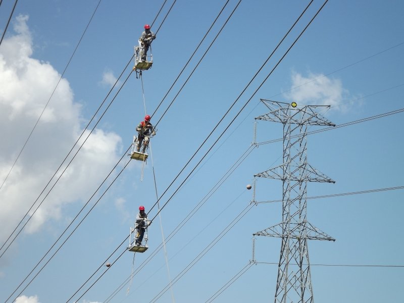 - Lançamento e grampeamento de cabos condutores e para raios;